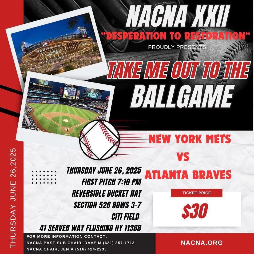Click for flyer! Thursday, June 26th, 2025. FIRST PITCH 7:10 PM. The ticket price is $30. SECTION 526 ROWS 3-7. Citi Field, 41 SEAVER WAY FLUSHING NY 11368