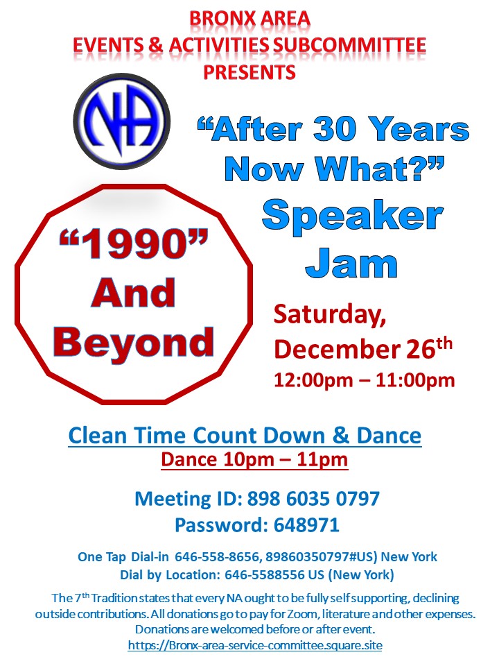 Bronx Area E+A Speakerjam, December 26 “After 30 years now what?” Speakerjam December 26 noon – 11pm Dance 10pm – 11pm FLYER